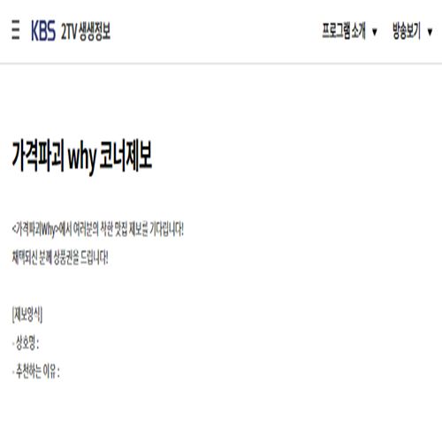 정리하자면 <공식 홈페이지 2TV 생생정보 검색 및 클릭 메뉴 시청자참여 가격파괴 Why 코너제보 로그인 후 하단 글쓰기> 입니다.